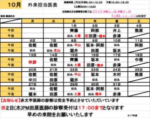 【 外来担当医師の診療スケジュール:10月 】